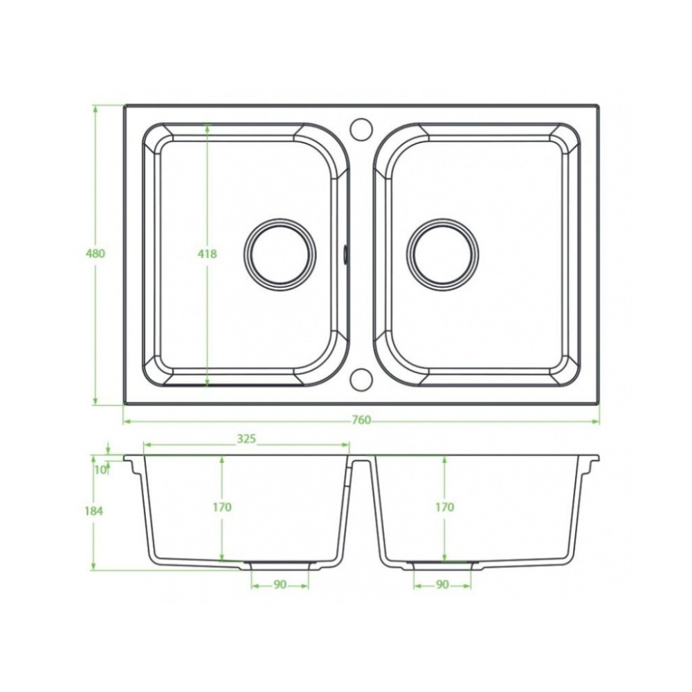 Granitový dřez dvojitý bez odkapu CELIA 760, 760x480x170, černý
