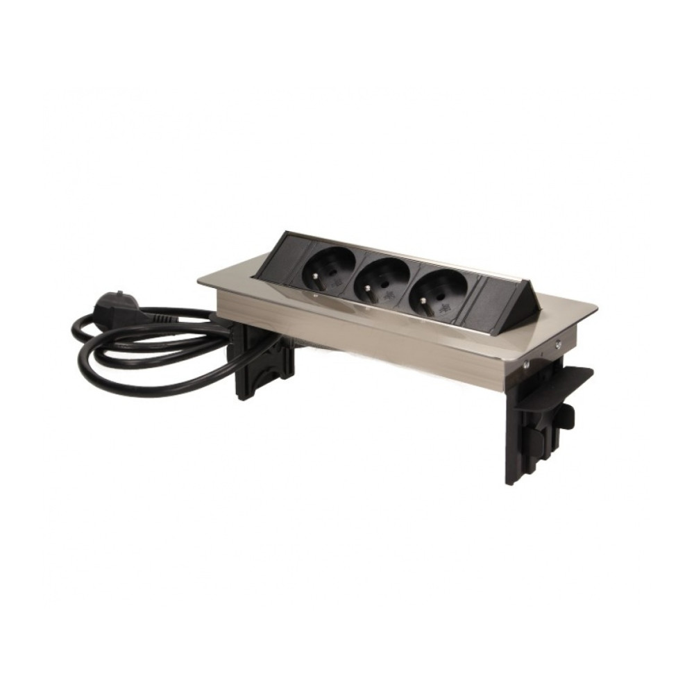 ORNO zásuvka elektro stolová výklopná vestavná-3x zásuvka+kabel stříbrná