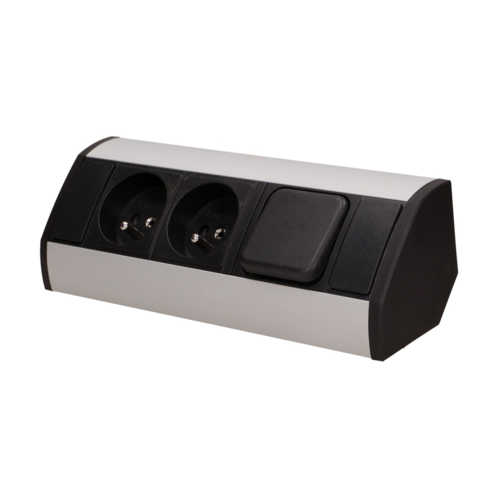 ORNO zásuvka elektro-rohová-2x zásuvka+vypínač+kabel stříbrná/černá