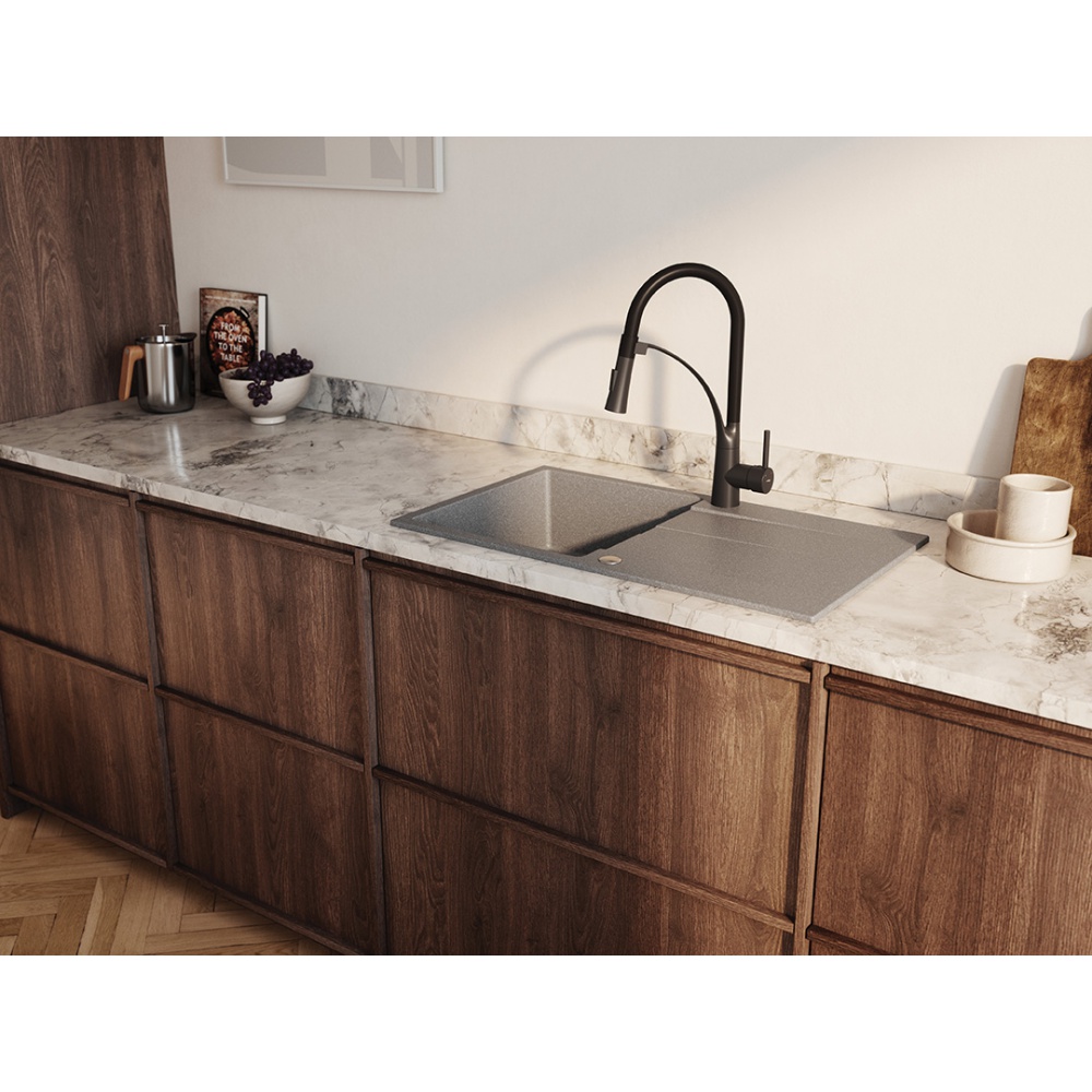 Granitový dřez s odkapem LAUT 760, 760x440x174, šedý