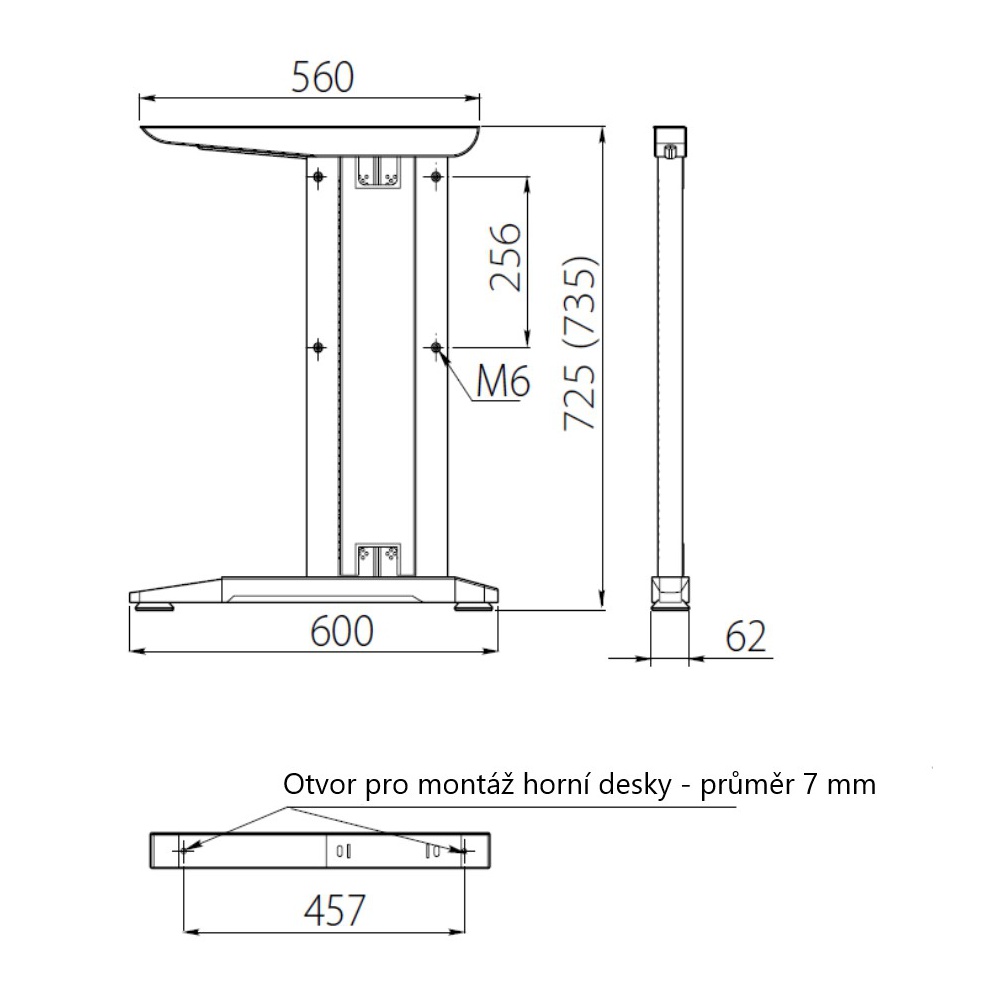 podnož kancelářská 600/720mm kov stříbrná (sada na 1 stůl)