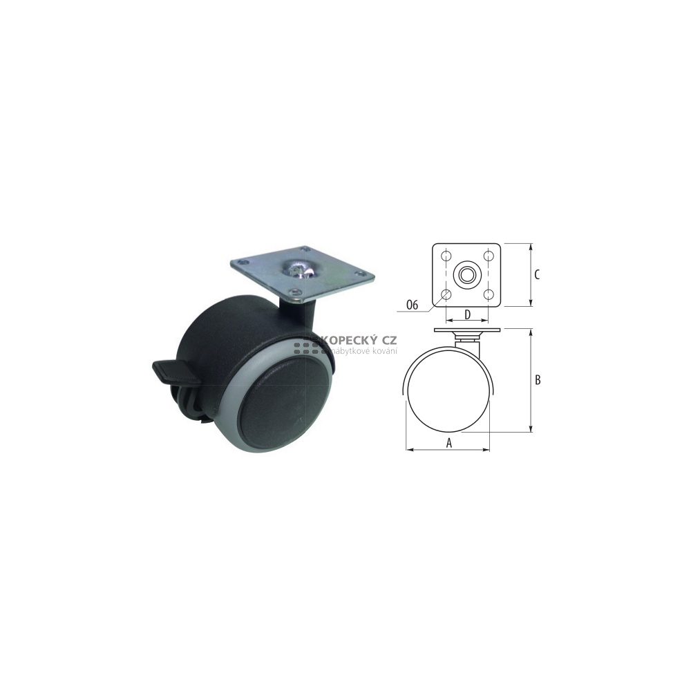 kolečko 50 PU pásek+plotnička+brzda BA50G D42k