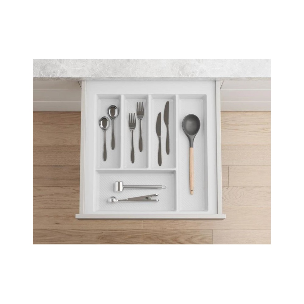 Praktické rozvržení přihrádek umožňuje efektivní organizaci příborů a maximální využití prostoru v zásuvce.