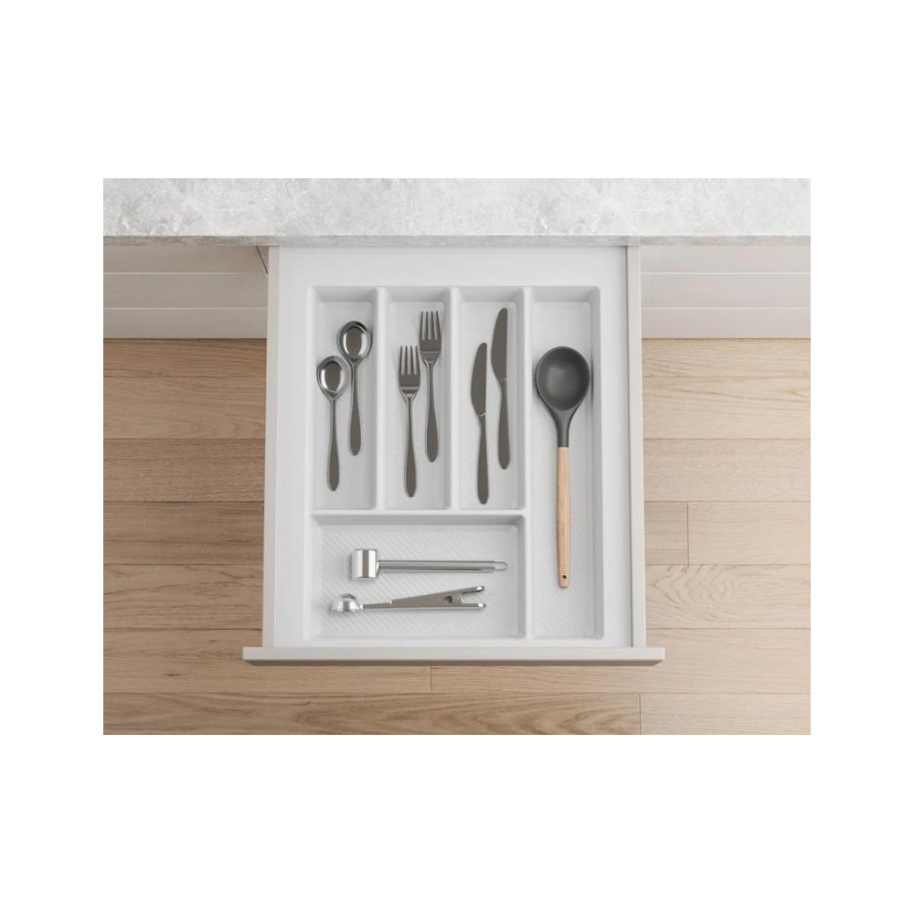 Praktické rozvržení přihrádek umožňuje efektivní organizaci příborů a maximální využití prostoru v zásuvce.