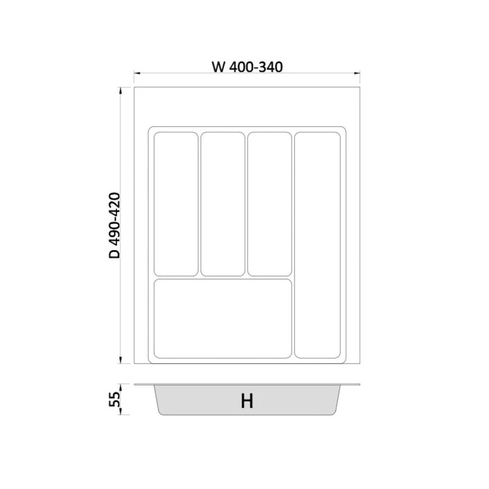 Vysoce kvalitní plast tloušťky 2 mm se speciální žebrovanou strukturou zaručuje výjimečnou odolnost a trvanlivost. Drážky na dně příborníku navíc eliminují pohyb předmětů při manipulaci se zásuvkou a usnadňují uchopení menších předmětů.