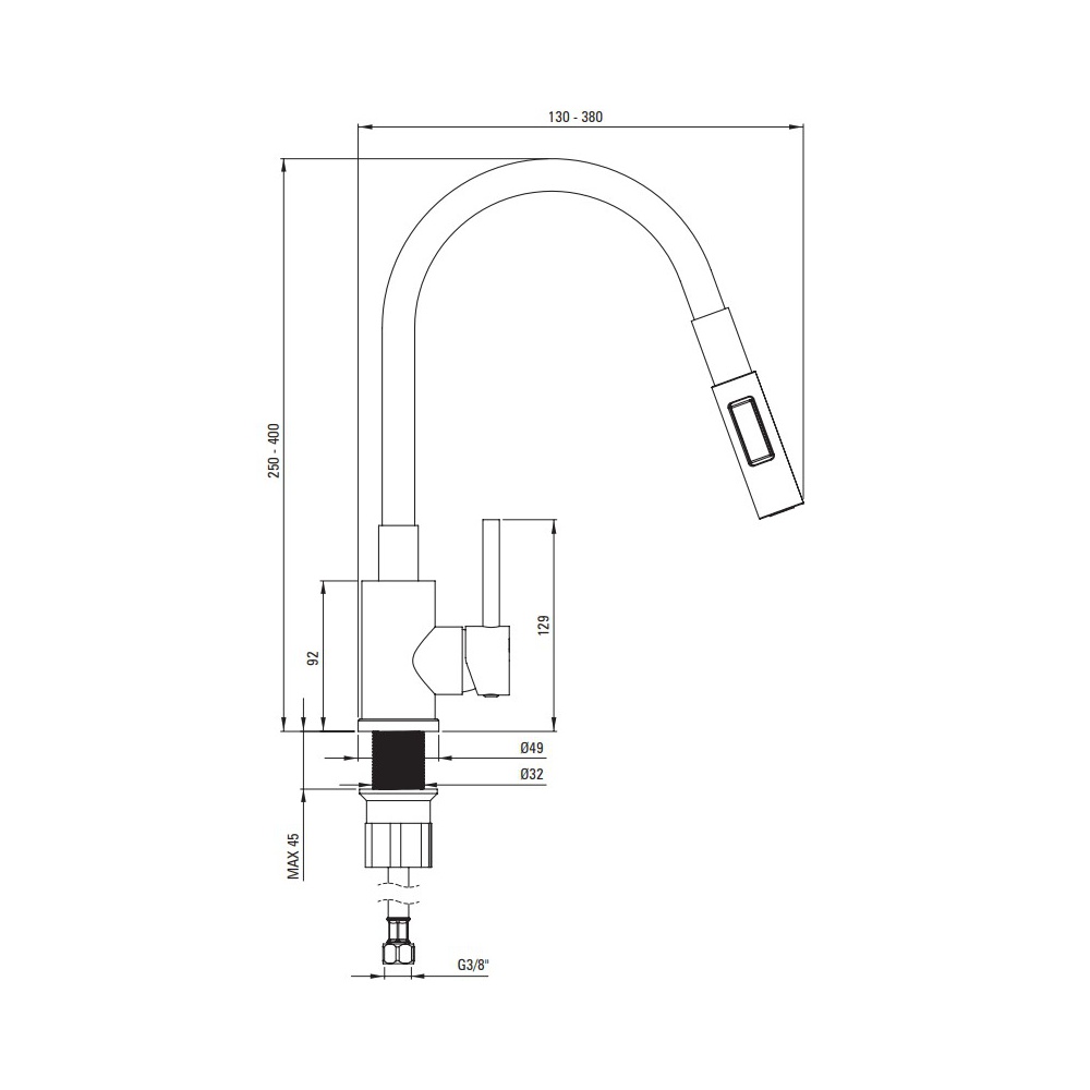Dřezová baterie ohebná se sprchou LUNO, černá
