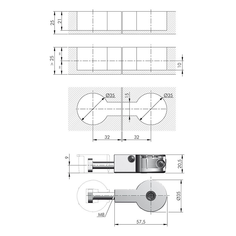 šroub spojovací k pracovní desce QUICK d35/64mm (komplet ze dvou dílů kod: 407115+249750)