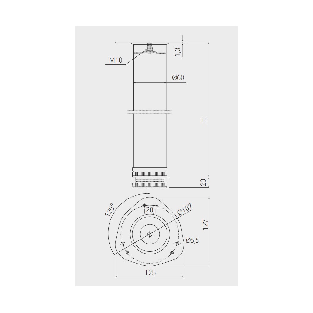 noha S6 60/710mm chrom s regulací (bal 4)