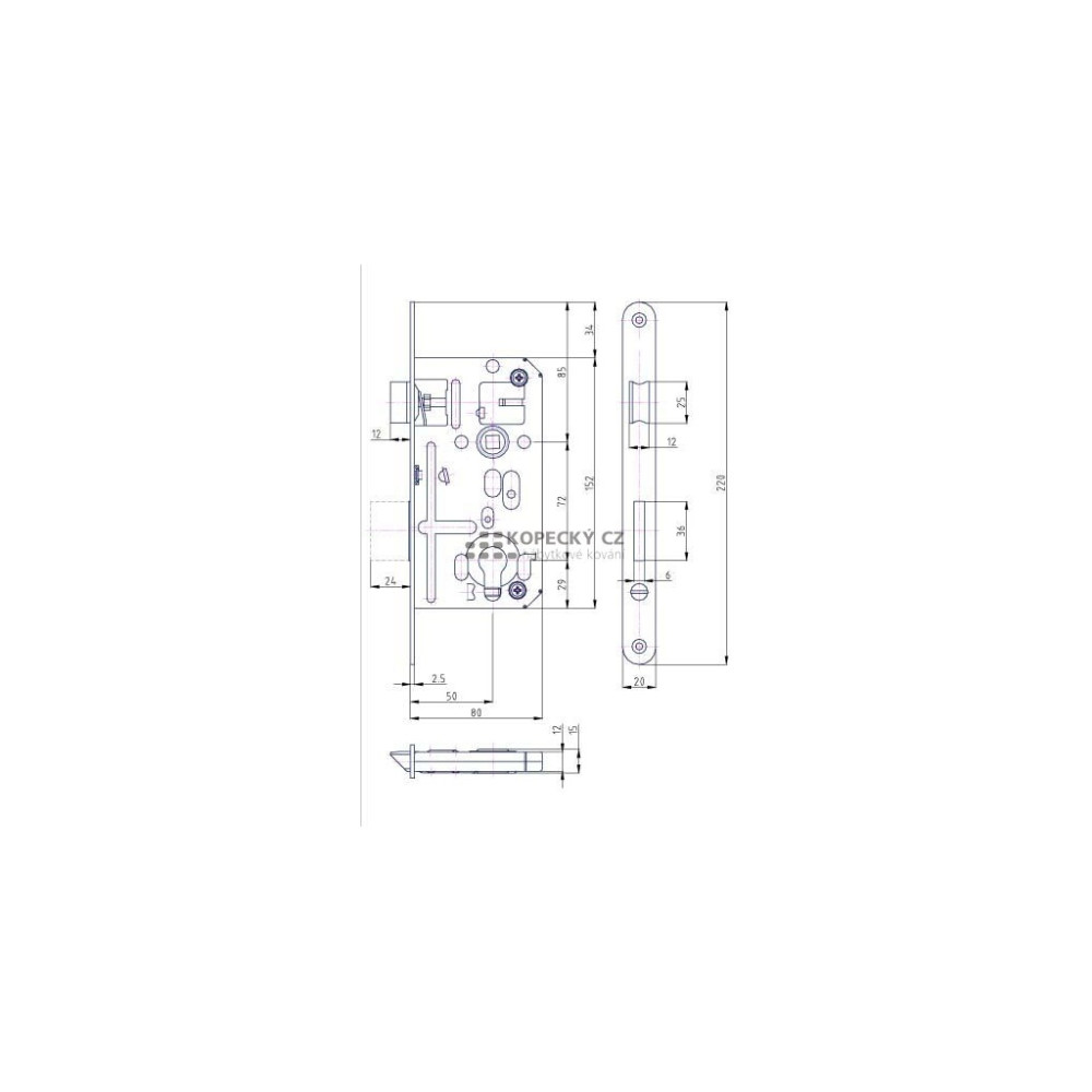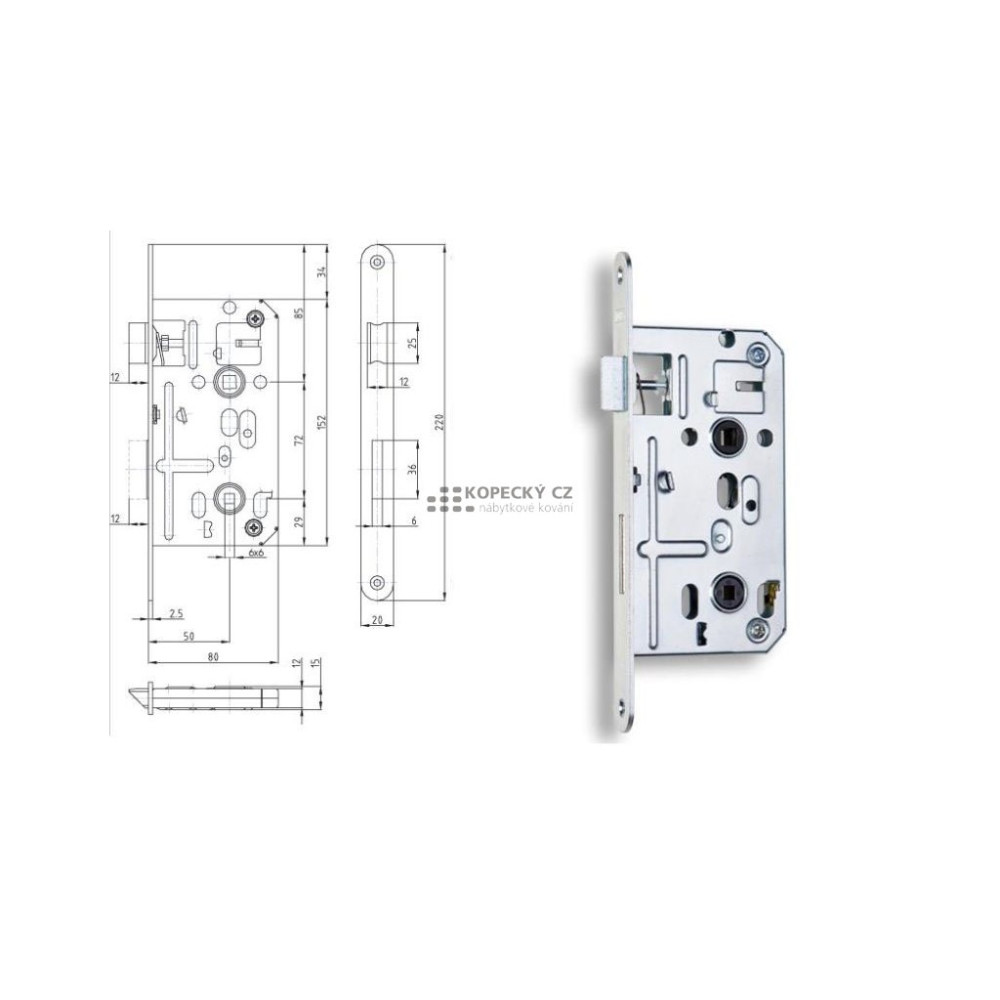 zámek K 135 72/80 L-P - WC, žlutý zinek