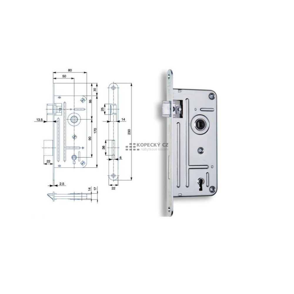 zámek 548A 90/80 P-L - dozický, žlutý zinek