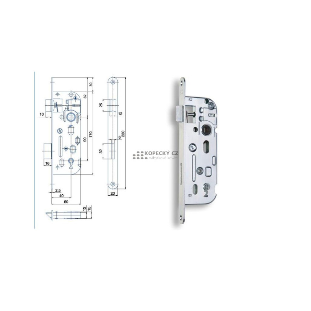 zámek 01-15 90/60 L-P - obyč., žlutý zinek