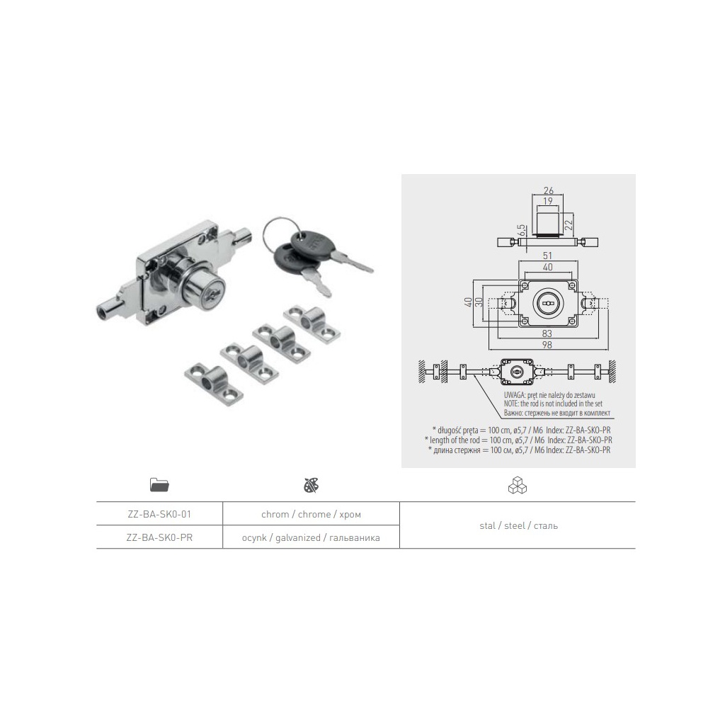 Zámek 708-22 Cr rozvorový, ( nutno doplnit D1020224 tyče 2ks)